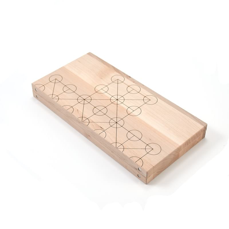 Here are 22 pieces and one playing board in the set. The game is made of natural materials and it is not coated. The color used on the game is certified to be used on children toys.
