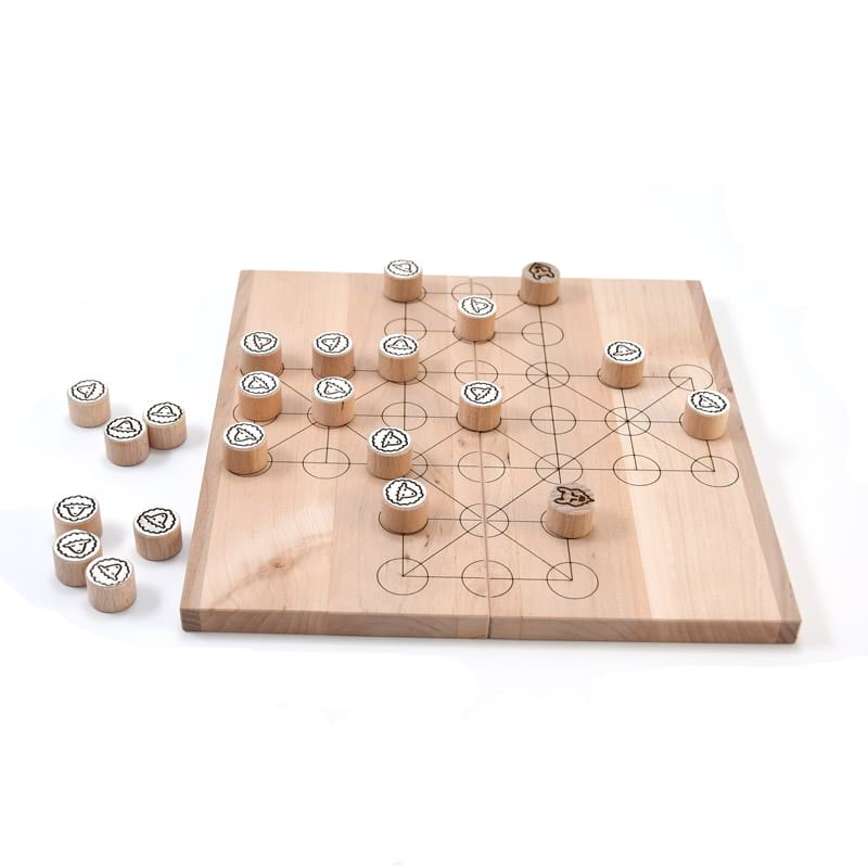 Wolf game is an old board game, which was popular in the previous century, but today we forgot about it. It can be played by two players, one has 20 sheep and the other 2 wolfs. The second players try to »eat« as many sheep as possible while the first player is trying to save them. The game is played similar to draughts.
